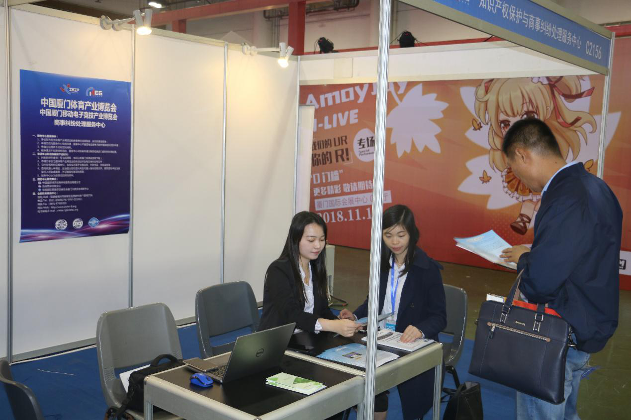 2018年11月16日至18日,第二届中国厦门体育产业博览会在厦门国际会展中心举办。海峡两岸仲裁中心、贸仲委福建分会和厦门国际商会调解中心共同作为大会的知识产权和商事争议解决机构,派员参加了此次展会,在展厅设置宣传咨询窗口,为参展商和参观商提供仲裁法律咨询与服务。