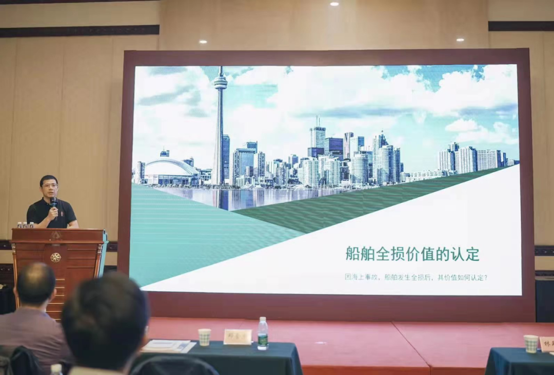 会议共有三个议题,第一个议题为“船舶全损价值的认定之案例指引和探讨”。厦门海事法院福州庭庭长邓金刚先生为大家分析了在最高人民法院《关于审理船舶碰撞和触碰案件财产损害赔偿的规定》第八条第一款规定实际操作难度大的情况之下,全国各地法院对于海上事故导致船舶发生全损后的司法裁判思路。最后,邓庭长结合自身实务经历分析了折旧计算法、评估计算法、举证证明法以及创新方法的思考。